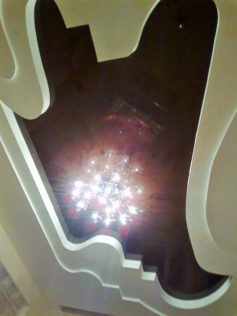 При использовании первого варианта нужно помнить, что элемент будет находиться в центре и притягивать всеобщее внимание. А это не всегда оправдано, ведь помещение должно быть единым целым. Поэтому при подборе люстры необходимо правильно определить ее размеры.