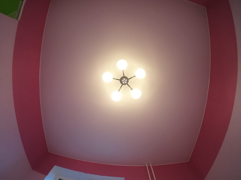 Такой потолок можно легко помыть. Он лишен такого недостатка, как оседание пыли и грязи на его поверхности, так как не является статичным. В больших комнатах, шириной более 5 м., полотно делается с еле заметным швом.